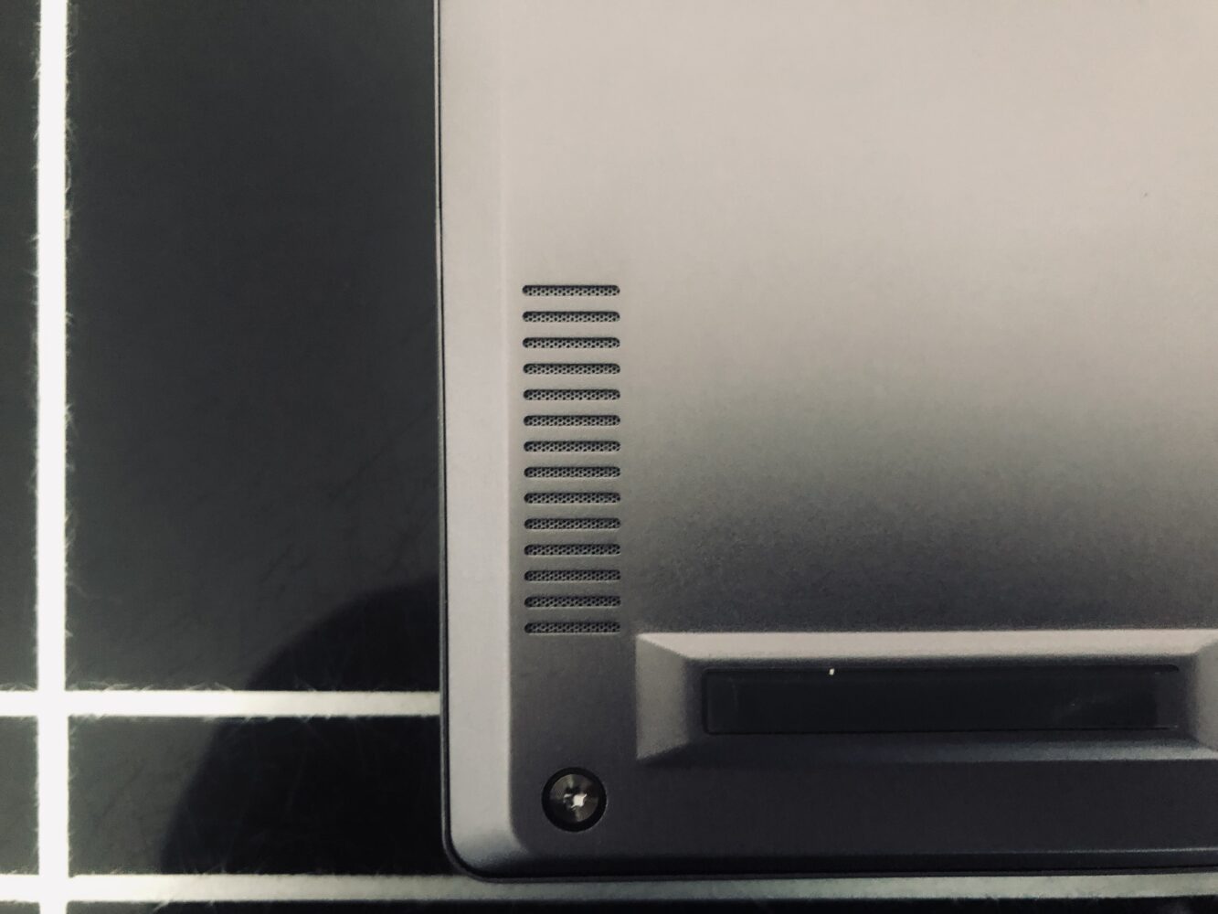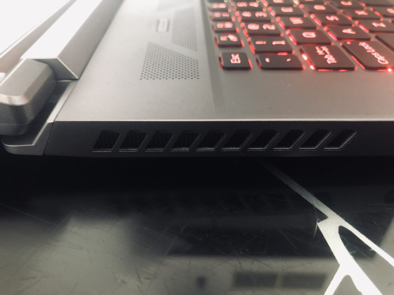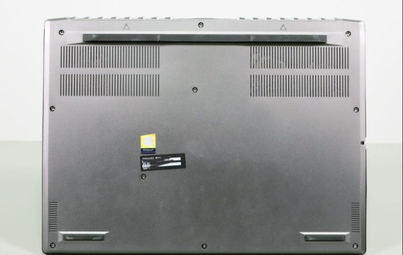 Mặt đáy máy, cũng được thiết kế các khe thông gió tản nhiệt tuy diện tích khe tản nhiệt không chiếm quá nhiều ở mặt đáy như như mẫu laptop gaimg khác. Ngoài ra, ở mặt đáy có chân đế cao su giúp máy tính xách tay cố định trên bàn làm việc.