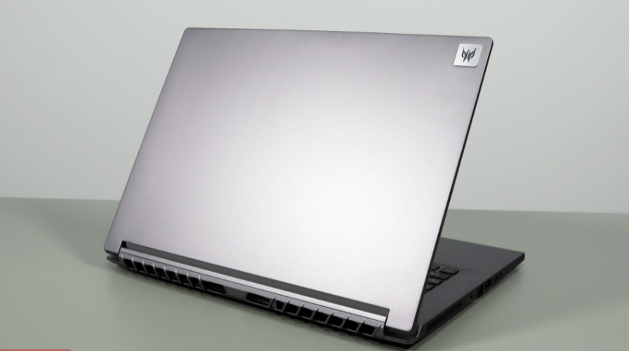 Máy có tone màu xám trông khá “sang xịn” đẳng cấp, nhưng vẫn vô cùng mạnh mẽ đúng phong cách gaming. Nắp lưng không có các đường cắt vát, hay đèn LED rực rỡ, logo Predator cũng không phát sáng trên nắp và thương hiệu dưới màn hình, đã được thay thế bằng logo tinh tế hơn nhiều, khá nhỏ nhắn được đặt một góc trên nắp lưng.