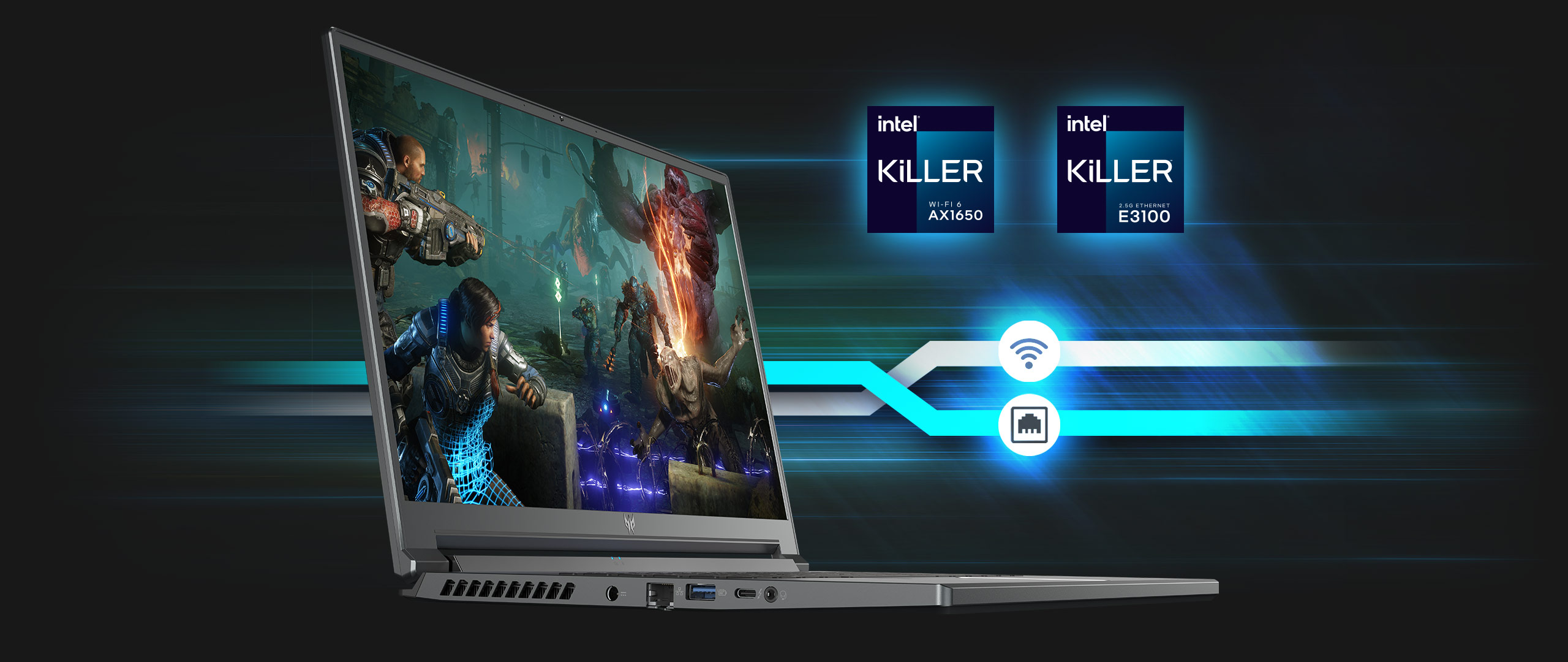 Chơi game mượt mà không thể thiếu Intel® Killer™ Wi-Fi 6 AX1650i và Control Center 2.0 có được Độ trễ thấp và kết nối đáng tin cậy, những thứ chỉ duy nhất mạng Killer có thể đem đến cho bạn trong từng trận đấu.